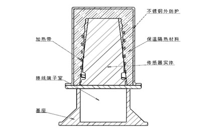 由于精密仪器仪表 各种高精度传感器形态各异,尺寸不同要开发紧密电伴热系统就必须先开发出适合该类型的安装紧固,安全防护等辅助配件以便能使各部分完美结合发挥最佳伴热效果。以下是为该传感器开发的伴热示例