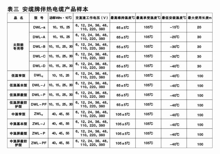 安缆牌伴热电缆产品样本